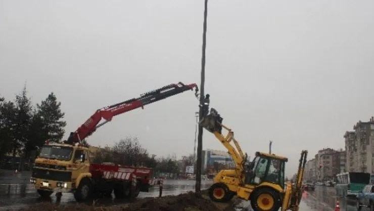 Kocasinan İlçesine bağlı Kocasinan Bulvarı’nda yapılan çalışmalarda aydınlatma direğini söken işçilerin aldığı güvenlik önlemleri yürekleri ağza getirdi. Ağırlığı yaklaşık 2 tonu bulan aydınlatma direklerine, kepçenin üzerine çıkan bir işçi çelik halat bağladı. Vinçler vasıtasıyla direkler yerinden sökülürken, işçilerin baret takmaması ve çevrede herhangi bir güvenlik önlemi alınmaması dikkat çekti.