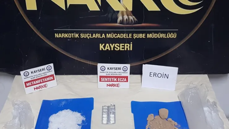 Takip sonucu durdurulan araçta arama yapıldı. Şüphelilerin üzerinde ve araçta tek parça halinde 88 gram eroin, 2 parça halinde 38,5 gram metamfetamin ve 12 sentetik hap ele geçirildi.