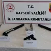 Yeşilhisar İlçe Jandarma Komutanlığı KOM ve NSM Şube Müdürlüğü tarafından, Yeşilhisar İlçesi Kuşçu mahallesinde 'Kullanmak İçin Uyuşturucu veya Uyarıcı Madde Satın Almak, Bulundurmak ya da Kabul Etmek' suçundan hakkında soruşturma başlatılan A.T. yakalandı. A.T.'nin, uyuşturucu maddeyi Kuşçu Mahallesinde mevsimlik tarım işçisi olarak çalışan E.T. isimli şahıstan satın aldığı ifadesinin üzerine, E.T. ve ailesinin ikamet ettiği 4 çadırda ve şahıslara ait araçlarda arama gerçekleştirildi. Bu kapsamda 2 adet pompalı av tüfeği, 20 adet 12 kalibre fişek, 1 adet 9 mm tabanca, 1 adet şarjör, 1 adet tahta saplı demir pala ele geçirildi. E.T. ve G.T. isimli şahıslar gözaltına alınırken olayla ilgili gerekli adli işlemler başlatıldı.