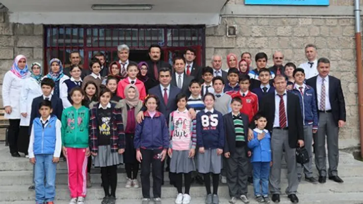 Vali Düzgün, okul ziyaretinin sonunda etrafını çeviren öğrencilerle hatıra fotoğrafı çektirerek, satranç ve spor malzemesi hediye ettiği öğrencilere kitap ve görüntü cd’leri gönderme sözü verdi.