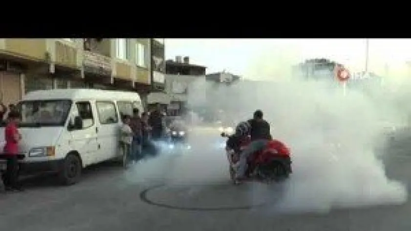 Kayseri'de dünya evine giren motorcu çift, evlenirken de motorlarından inmediler.
