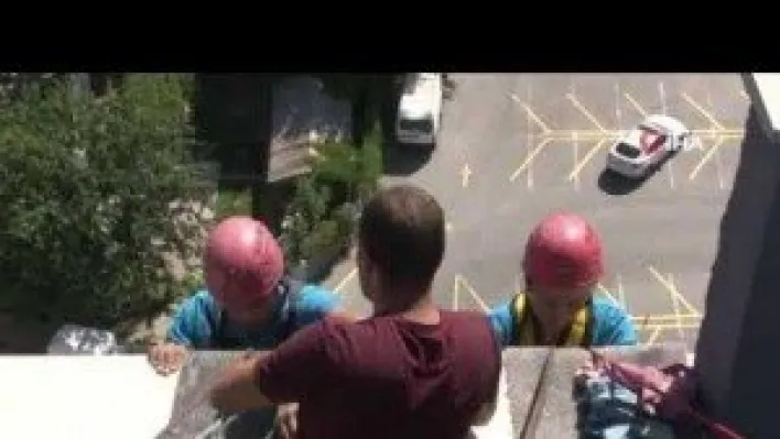 Kayseri'de temizlik işçileri, geçimlerini sağlamak için yüksek binaların temizliğini yapıyor. Yerden metrelerce yüksekte korkusuzca temizlik yapan işçilerin çalışmaları, komando eğitimini anımsatıyor.