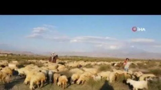 Kayseri'de Erciyes Dağı'nın eteklerinde üç kardeş, yazın 600 koyuna çobanlık yaparak ailelerine yardım ediyor.
