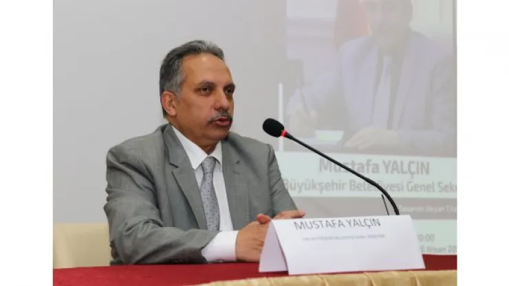 Öz geçmişinin okunmasının ardından başlayan söyleşide konuşan Genel Sekreter Mustafa Yalçın, 22 yıldır belediyecilik yaptığını ve tecrübelerini sahada kazandığını söyledi.
