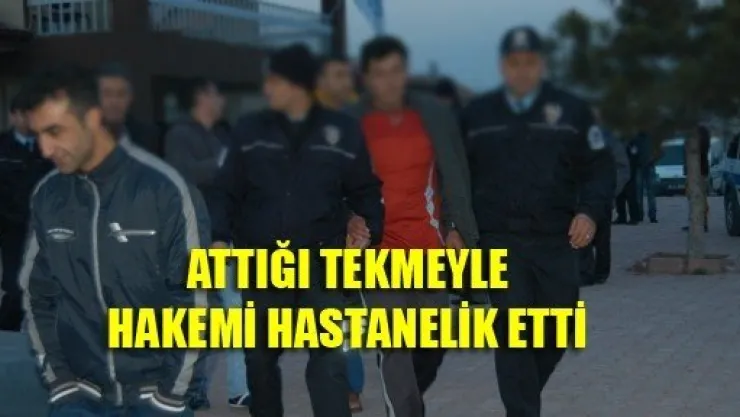 Kayseri'de, amatör iki takımın arasında oynanan maçta, kırmızı kartla oyun dışında kalan kaleci, tartışmalı pozisyonda gol kararı veren yan hakemi attığı tekmeyle hastanelik etti.