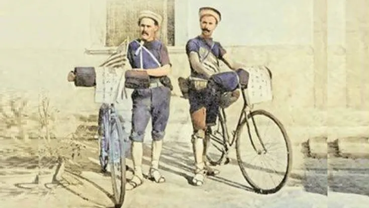 1890'ların başında, Amerikalı iki maceraperest gezgin Thomas Gaskell Allan ve William Lewis Sachtleben, "Across Asia on a Bicycle" adlı eserlerinde bisikletle gerçekleştirdikleri dünya turunu ve Anadolu'daki izlenimlerini aktarmaktadır. 23 Haziran 1890'da başlayan yolculukları, 1891 kışında İstanbul'a ulaşmalarıyla devam eder.