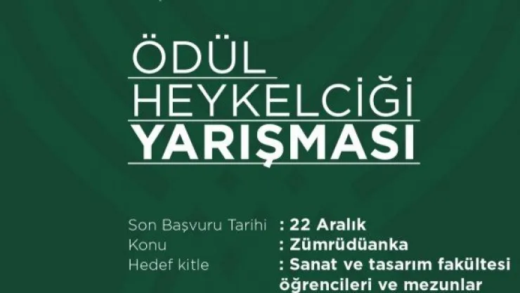 Yeşilay "bağımlılıklardan uzak, sağlıklı yaşamı" misyon edinen, söz ve eylemleriyle bu mücadeleye destek veren kişi ve kurumları ödüllendirdiği "Zümrüdüanka Ödülleri" için ödül heykelciliği yarışması başlattı. Sanat ve tasarım fakültesi öğrencilerine ve mezunlarına açık olan yarışma için son başvuru tarihi 22 Aralık!