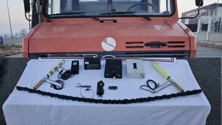 Olay yerinde; 2 adet seri numarası bulunmayan dijital cihaz, 2 adet alan tarama çubuğu, 1 adet pusula, 1 adet 6 amperlik şarj aleti, 1 adet 12 Wolt Mustang marka akü ve 1 adet 2 metrelik filtreleme cihazı ele geçirilirken olay ile ilgili adli tahkikata başlandı.