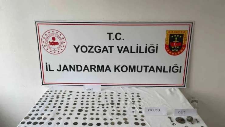 Yozgat'ta jandarma ekiplerince durdurulan bir araçta yapılan aramada 212 sikke ile tarihi eser niteliği taşıyan 21 obje ele geçirildi.