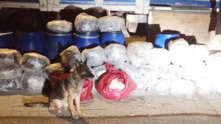 Kamyonda narkotik köpeği "Sedef"in katılımıyla yapılan aramada, 9 varilin içine gizlenmiş 190 kilogram esrar ele geçirildi. Sürücü M.K. gözaltına alındı.